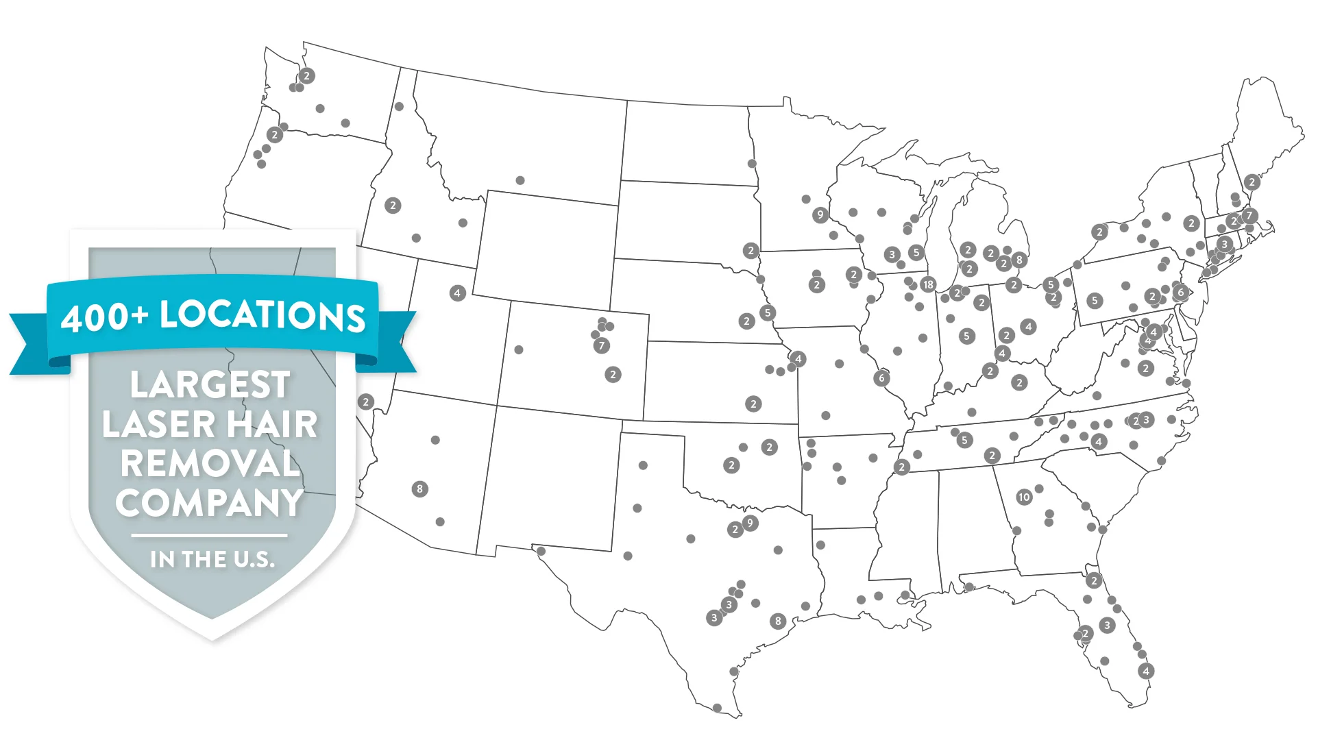 We are the largest laser hair removal company in the country with more than 390 locations in 0 states, and we are the only company that includes the Unlimited Package™ with every purchase.